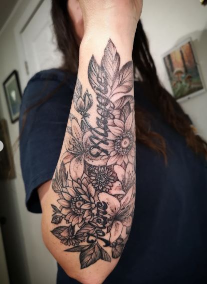Immerse yourself in the world of nature-inspired body art at Sprig Tattoo, where Alexandria’s unique fusion of linework and organic patterns creates mesmerizing and personalized tattoos.